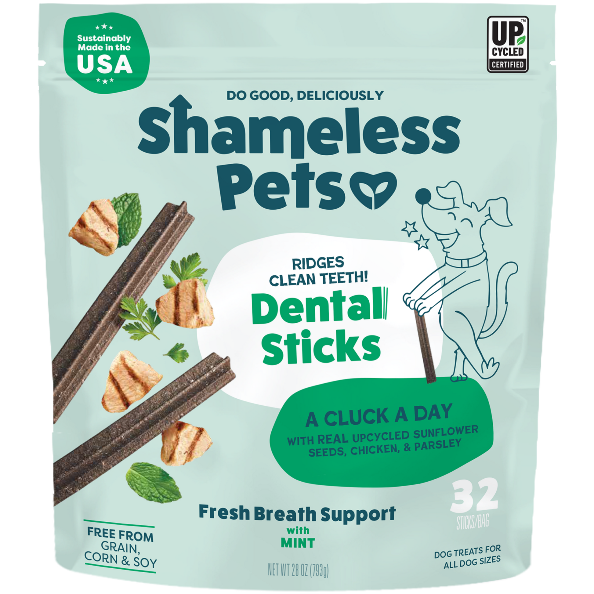 Grab A Cluck A Day Dental Sticks to help keep those pearly whites nice and clean!