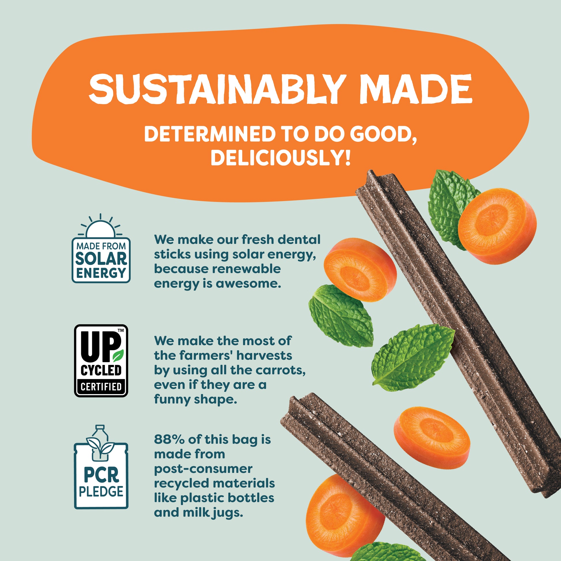 Ingredients: Sunflower meal*, chickpea, tapioca, coconut glycerin, carrot*, salmon, citric acid (a preservative), sorbic acid (a preservative), peppermint oil